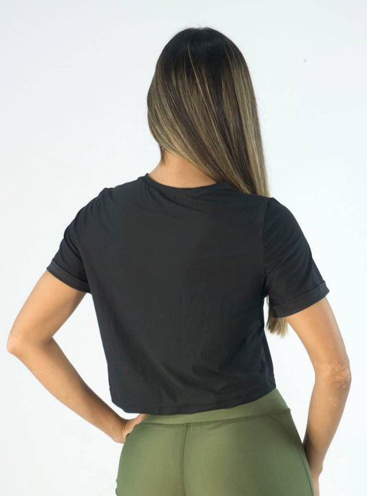 SEAMLESS 'NO RULES' BLACK CROP TOP
