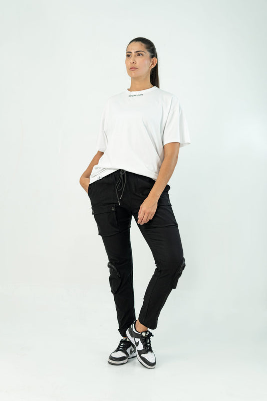 WHITE LOOSE FIT UNISEX 'BE YOUR RULES' PRINTED T-SHIRT