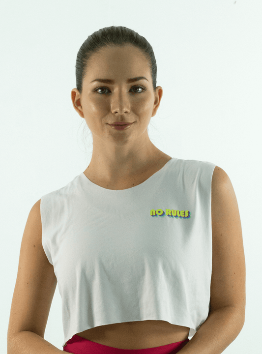 SEAMLESS 'NO RULES' WHITE CROP TOP